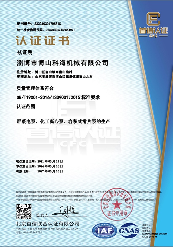 ISO9001質(zhì)量認(rèn)證體系認(rèn)證·多年專(zhuān)注于耐酸泵化工泵生產(chǎn)制造